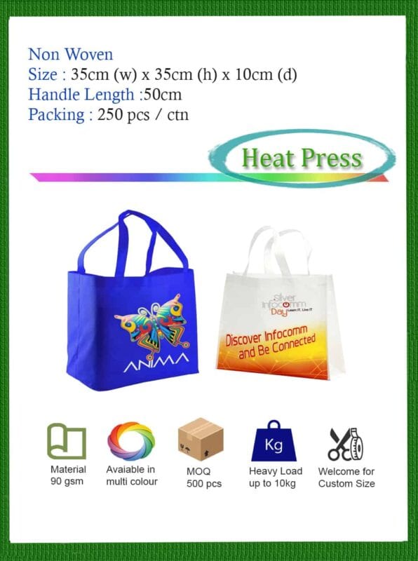 We print on non-woven tote bags, canvas bag, and more — all custom-made right here in Malaysia. Let us create bags you’ll love.