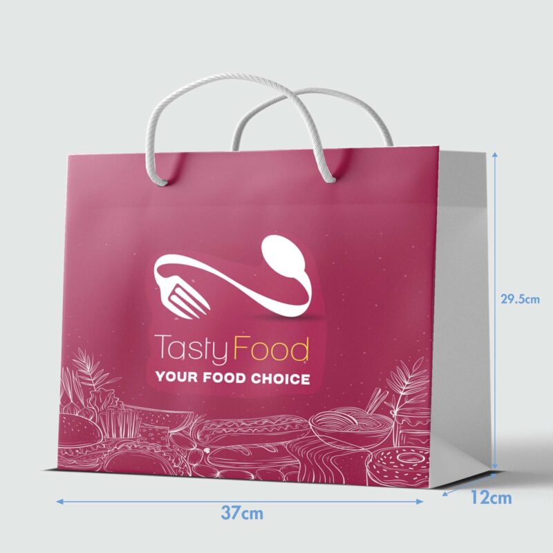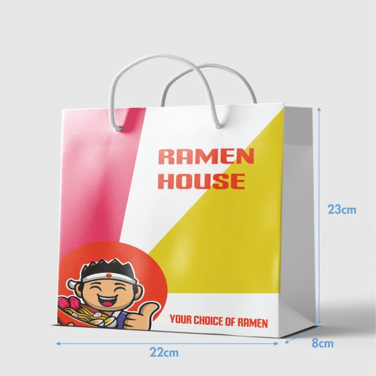 Custom paper bag printing starts from RM1.50 per bag, with a minimum order quantity of 1,000 pieces.